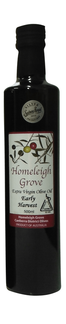 Environmental factors ensure subtle changes in oil character each year. However, the Homeleigh Grove label is always a fruity mild to medium oil with a tinge of pepperness.